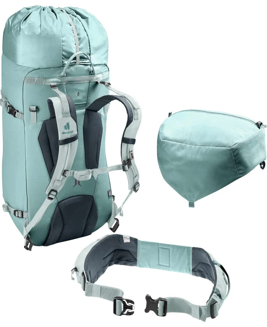 Der klimaneutrale, PFC-freie Guide bietet den bestmöglichen Kompromiss aus Komfort-Gewichts-Verhältnis und Funktion. Das angenehme Tragesystem mit guter Belüftung, der körpernahe Lastenschwerpunkt, die ergonmisch geformten, abnehmbaren Hüftflossen, die robusten Materialien, die ausgefeilten Befestigungsmöglichkeiten und die verstaubare Seilfixierung ermöglichen volle Kontrolle und hohe Bewegungsfreiheit bei mehrtägigen alpinen Einsätzen des Rucksacks. Die J-förmige Frontöffnung erlaubt zudem einen schnellen Zugriff auf das Hauptfach.