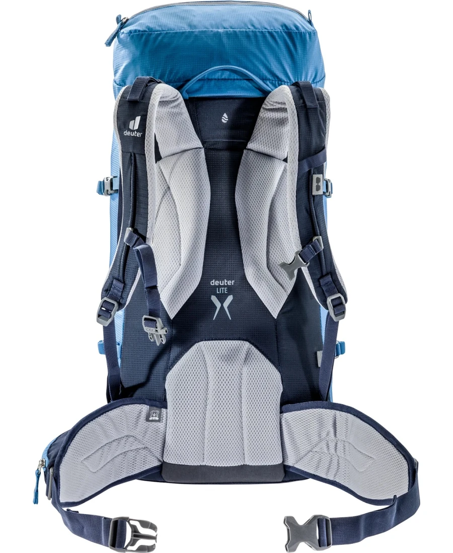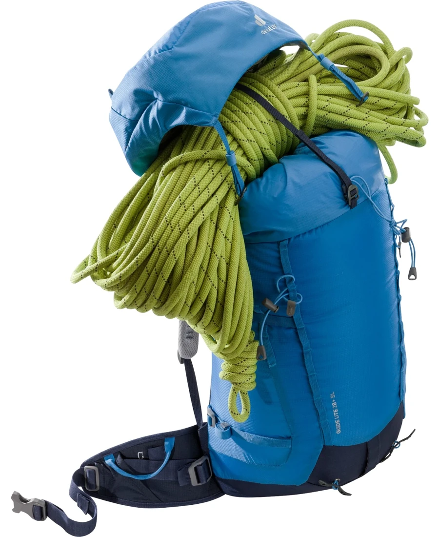 Der neue Deuter Guide Lite 28+ SL ist mit seiner schlichten Ausstattung, dem klaren Design und einem Gesamtgewicht von nur 900g ein Leichtgewicht mit tollem Tragekomfort. Und wer auf seiner Tagestour zusätzlich ein paar Gramm Gewicht sparen möchte, der lässt den abnehmbaren Bauchgurt und den Rucksackdeckel einfach zu Hause. Denn mit den kleinen Flügeln an den Schultergurt-Ansätzen sitzt der Rucksack bei jeder Kletterbewegung fest und nah am Körper.