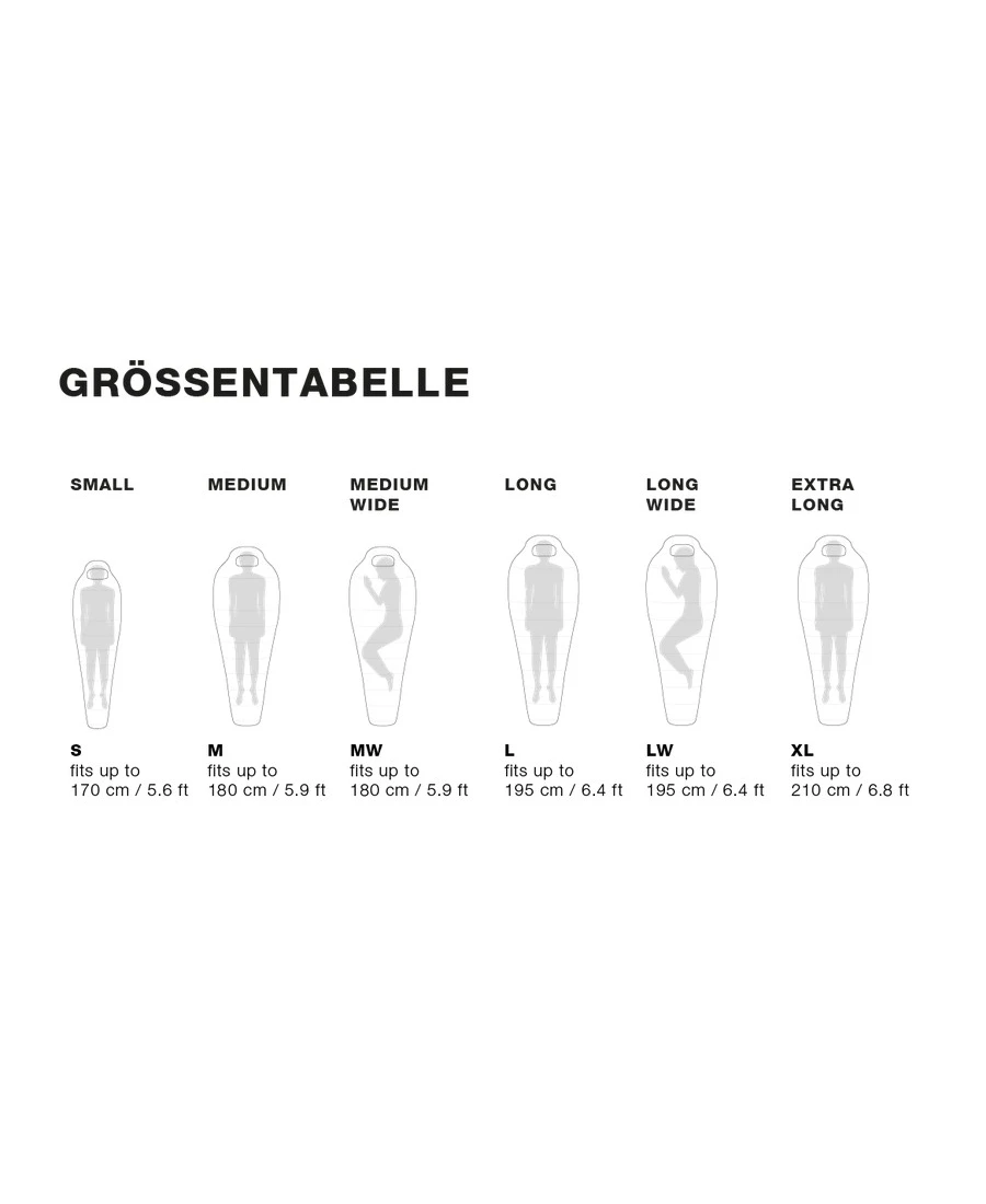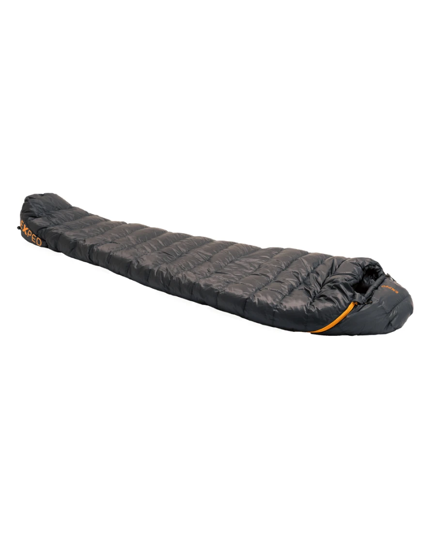 Die Füllung aus feinster, RDS-zertifizierter Gänsedaune mit 850+ cuin Bauschkraft verleiht ihm eine ausgezeichnete, homogene Wärmeleistung. Durch die rundumlaufenden, H-förmigen Daunenkammern lassen sich die Daunen bei Bedarf „nach oben schütteln“ und der Schlafsack an die jeweiligen Temperaturbedingungen und die verwendete Isomatte anpassen. Der Fokus liegt bei der Ultra-Serie jedoch nicht nur auf der Füllung, auch bei der Verarbeitung verwendet Exped nur das Feinste vom Feinen. Als Außen- und Innenmaterial kommt Pertex Quantum zum Einsatz, das komplett aus rezikliertem Polyamid besteht. Details wie der Reißverschluss und das Webbing werden aus reziklierten PET-Flaschen hergestellt. Der Ultra Schlafsack ist in fünf verschiedenen Größen erhältlich – somit findet jeder die passende Variante!