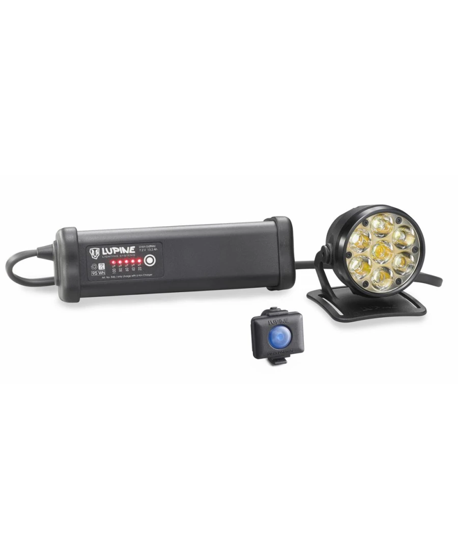 Die Lupine Betty R 14 ist die hellste Helmlampe der Welt. Mit gigantischen 5000 Lumen und eine Reichweite von bis zu 380 Metern stellt sie das absolute Maximum der Technik dar. Mit Hilfe der Bluetooth Fernbedienung lässt sich der Scheinwerfer auch direkt vom Handgelenk oder Radllenker bedienen. Aufgrund ihres großen Akkus garantiert sie eine lange Leuchtdauer.