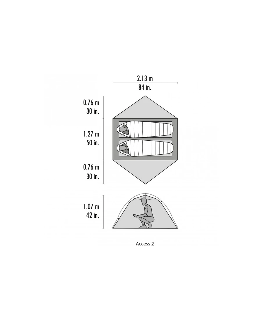 Vor allem jenseits der Baumgrenze, in größeren Höhen, kann der nächtliche Schneefall schon mal beachtliche Mengen übersteigen – eine Herausforderung für die Stabilität einer jeden Zeltkonstruktion. MSR hat sein Access 2 daher mit einer Rahmenkonstruktion versehen, die besonderen Wert auf die Stützfunktion im Mittelbereich des Zeltes legt, d.h. genau dort, wo sich besonders viel Schnee ansammelt. Damit bei all diesen technischen Finessen dennoch der Wohnkomfort nicht zu kurz kommt, verfügt das 2 Personenzelt über eine besonders große Apsis, die nochmals zwei Drittel des eigentlichen Schlafbereichs beträgt. Dort lässt sich demnach der allergrößte Teil der persönlichen Ausrüstung lagern und sorgt damit für mehr Platz im Innenzelt.