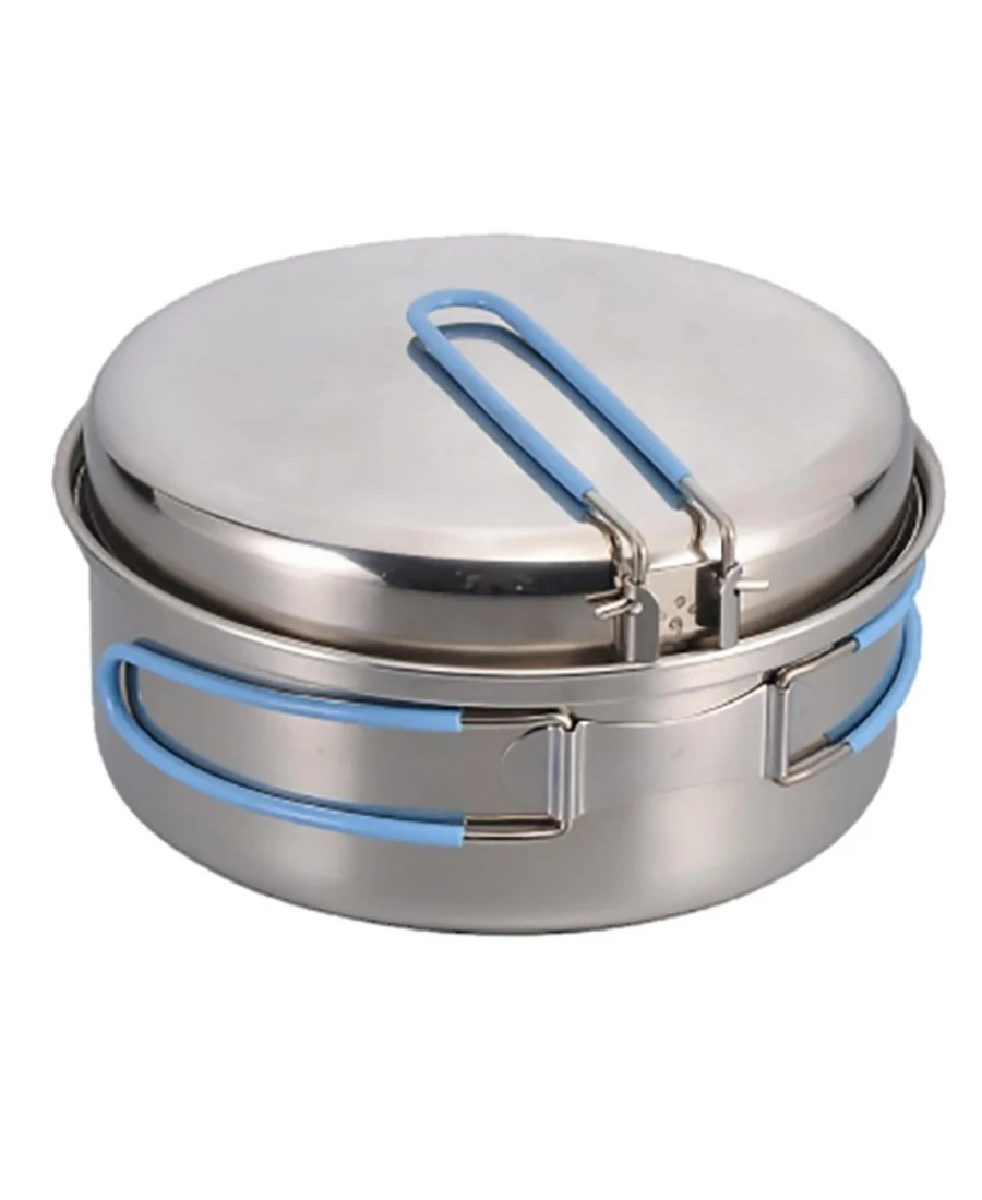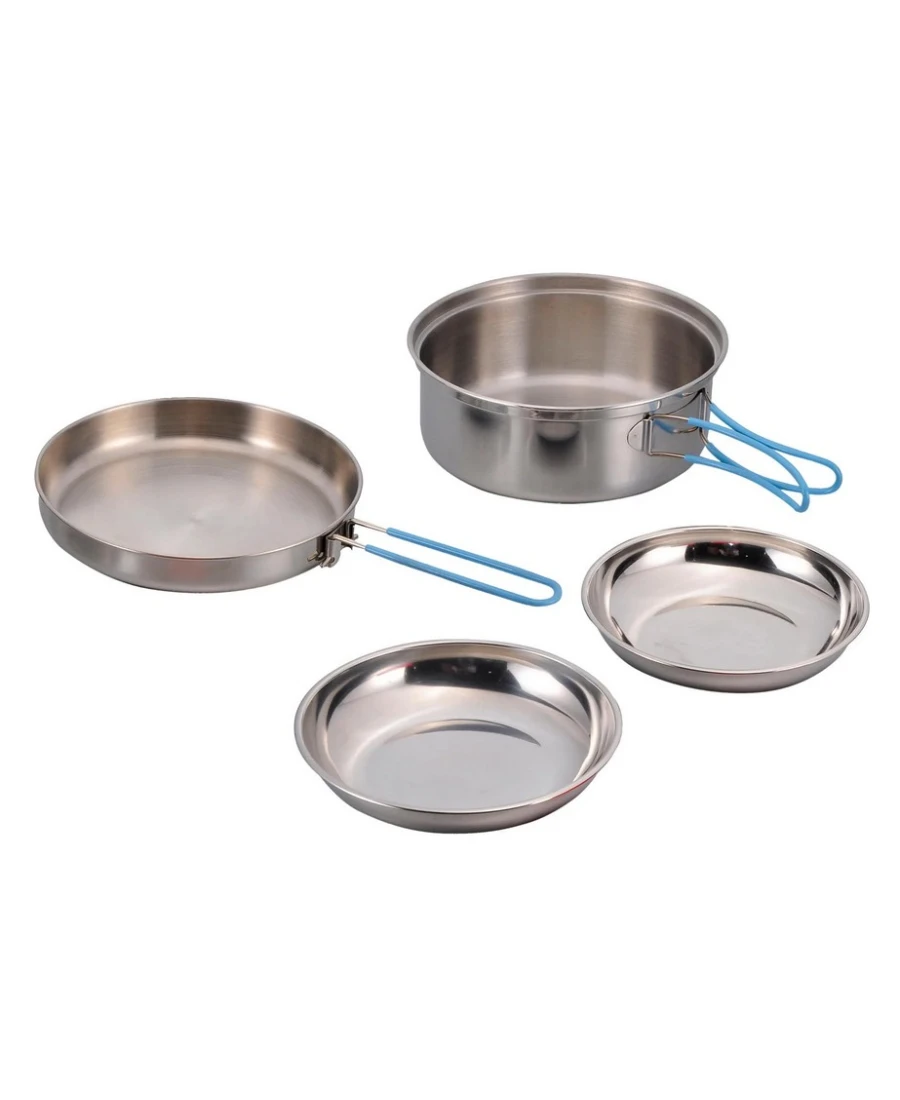 Das Origin Outdoors Edelstahlkochset Companion ist ein klassisches Kochset aus hochwertigem Edelstahl für 2 Personen. Das Set umfasst einen Kochtopf, eine Pfanne und zwei tiefe Teller. Sollte die Pfanne nicht gebraucht werden, kann sie auch als Deckel für den Topf verwendet werden, um das Kochen zu beschleunigen. Die Teller kann man bequem ineinander stapeln und für den Transport im Topf verstauen. Des Weiteren verfügen der Topf und die Pfanne über gummierte Klappgriffe für ein kompaktes und platzsparendes verstauen im Gepäck.