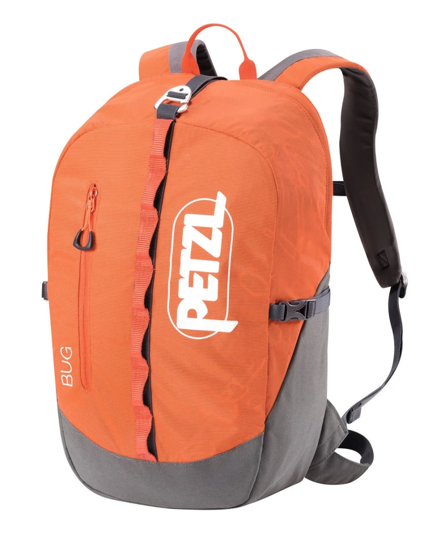 Durch das große Volumen mit 18l eignet sich der Tagesrucksack optimal zum Transportieren der Kletterausrüstung, sowie der Dinge, die man sonst noch benötigt (Wassersack, Proviant, Kleidung, Schuhe,…). Kurzum: Der Bug von Petzl ist bis ins Detail durchdacht, mit einer kompakten Form, Schulterträger die, die Bewegungsfreiheit nicht einschränken, eine komfortable Rückenpartie aus atmungsaktivem Material, ein abnehmbarerer Hüftgurt, seitliche Kompressionsriemen, eine Guidebooktasche, sowie ein Wertsachenfach und ein Innenfach für das Trinksystem.