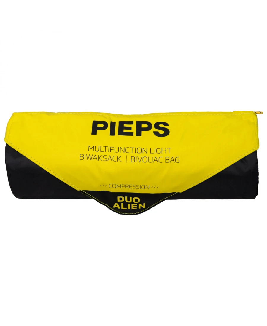 Der Pieps Bivy Duo Alien ist ein vielseitig einsetzbarer Biwaksack für zwei Personen oder für eine Person inkl. Ausrüstung, der dank seines kleinen Packmaßes und dem geringen Gewicht in jedem Rucksack Platz findet. Der Bivy Duo Alien ist im Vergleich zum Bivy Duo mit zwei getrennten Abschlüssen für den Kopf ausgestattet, damit zwei Person bequem und ohne Wärmeverlust darin schlafen können.