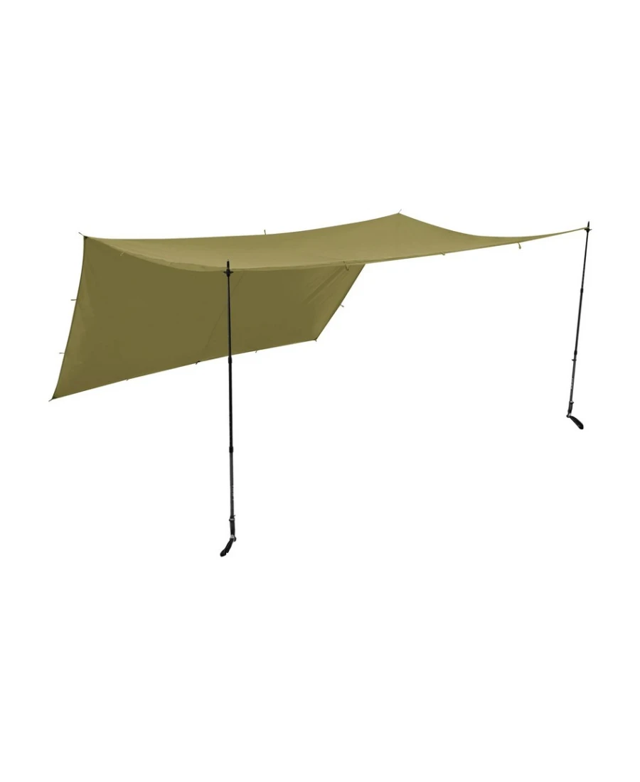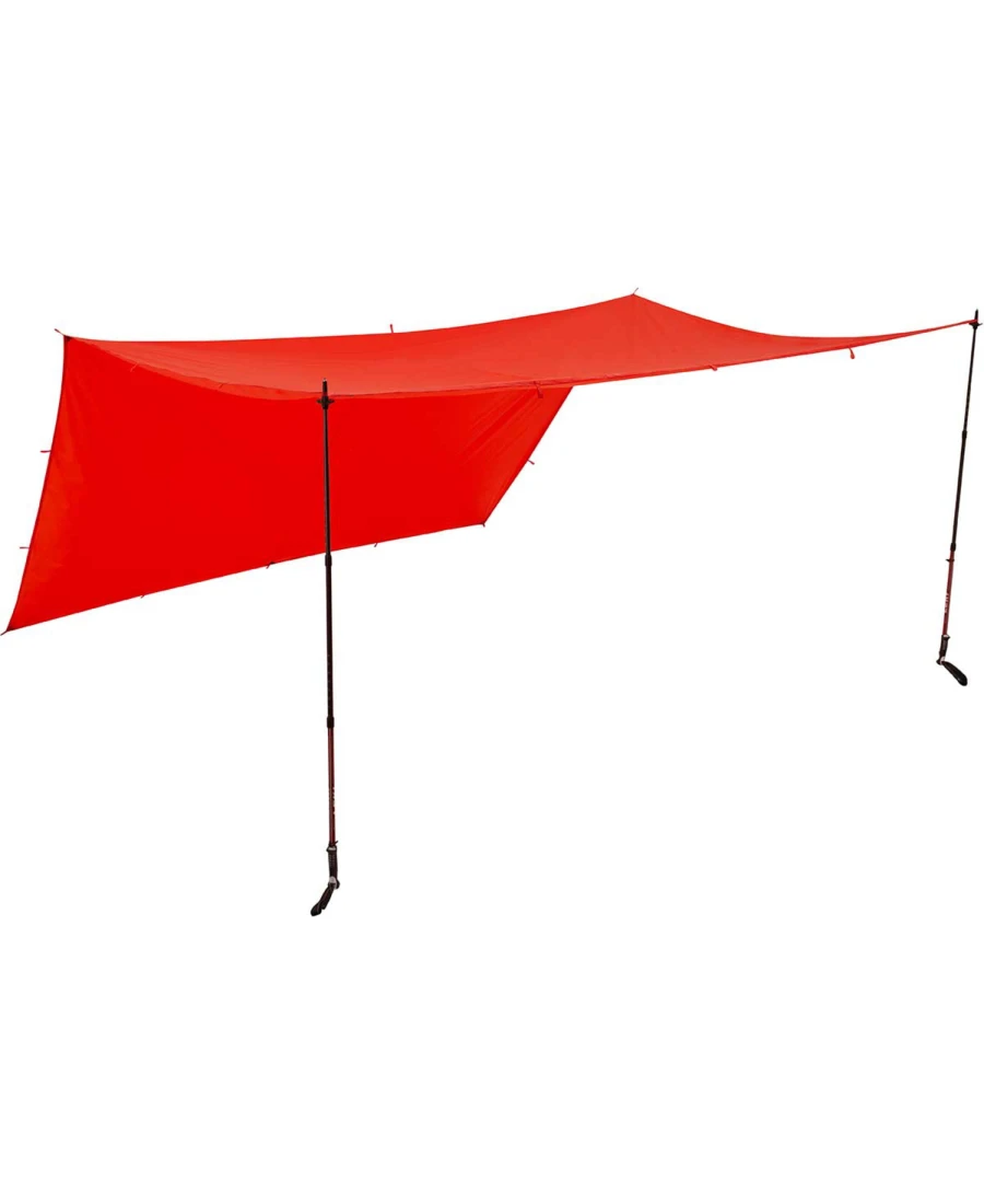 Das 3 m x 3,66 m große, rechteckige Tarp besteht aus robustem, silikonbeschichtetem 30D Cordura mit PU-Beschichtung. Es ist ultraleicht und wasserdicht, unglaublich robust und widerstandsfähig. Die 20 Befestigungspunkte sind verstärkt und bieten eine Vielzahl verschiedener Aufbaumöglichkeiten mit einem einzigen zentralen Abspannpunkt.