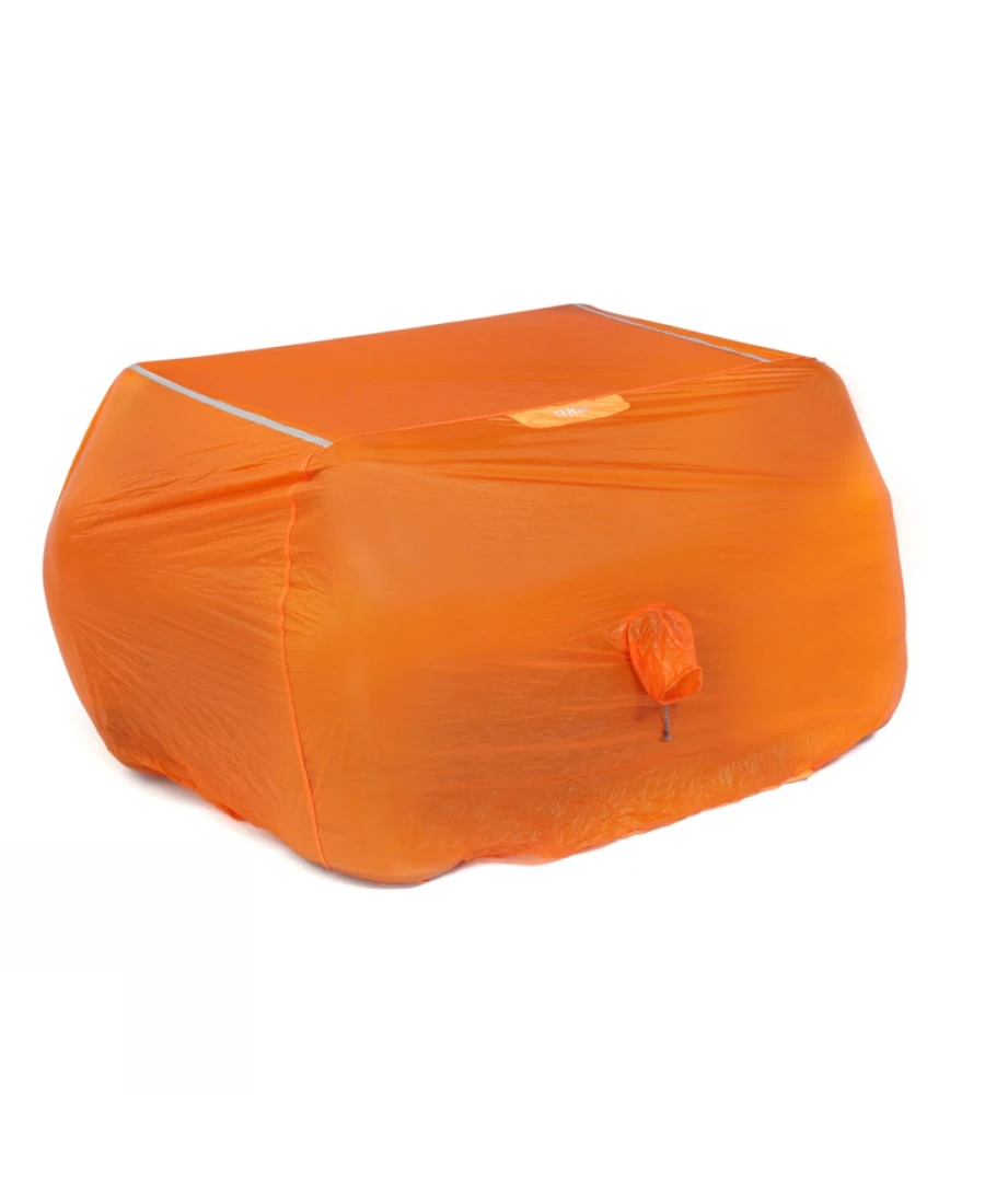 Das Superlite Shelter von Rab ist ein ultraleichtes 4-Mann-Biwakzelt. Es ist sehr einfach und sinngemäß aufgebaut und ist nur für den Notfall gedacht. Die Personen müssen in diesem Fall im Biwacksack sitzen. Das Zelt besteht aus wasser- und windabweisendem silikoniertem Nylon.