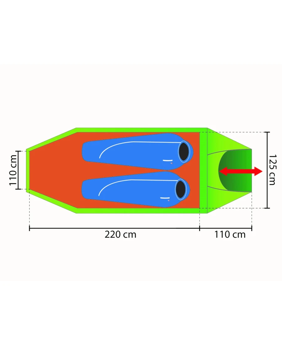 - Außenzelt: 100% Nylon, 20D Ripstop, beidseitig Silikon-beschichtet, 2000mm WS