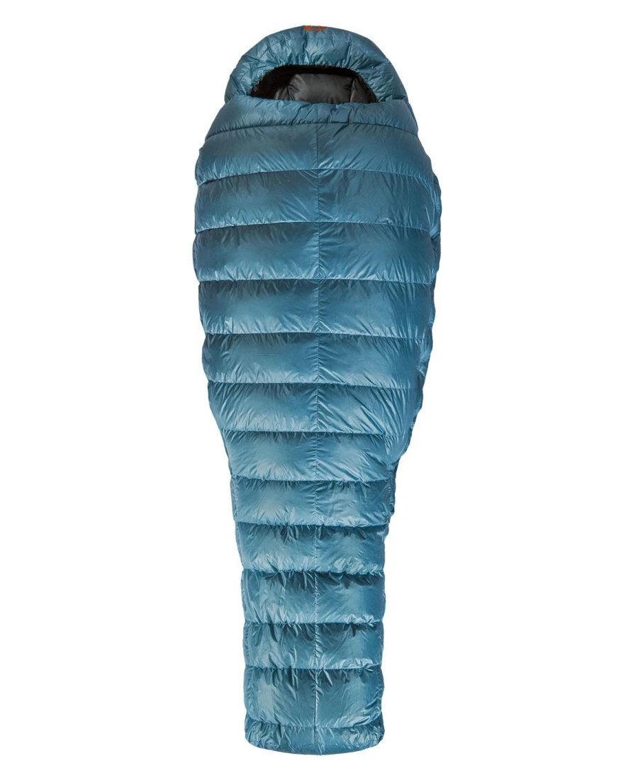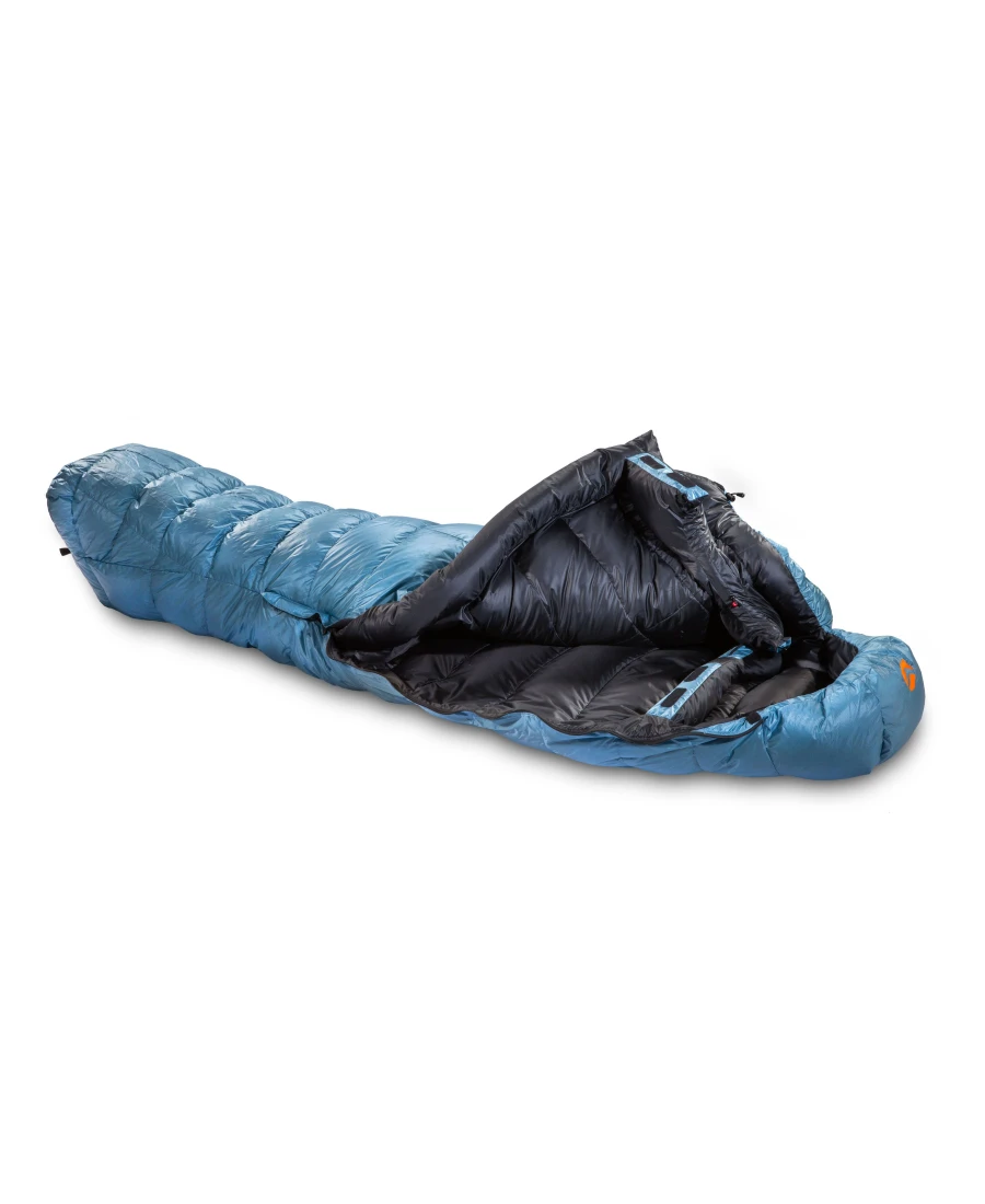 Der Valandre Shocking Blue Neo bietet Schlafkomfort durch eine gelungene Konstruktion. Nicht nur das die Kammern des Shocking Blue Neo anatomisch geformt sind, sie variieren auch in der Höhe. Außerdem sind die Nähte des Schlafsacks niedriger am Bein und höher an Körper und Brust. Somit passt sich der Valandre Shocking Blue Neo perfekt an die Körperform an ohne dabei einzuengen und ohne das zu viel Luft selbst aufgewärmt werden muss. Der Daunenschlafsack ist also kaum spürbar, fast als läge man am Strand in der Sonne. Zudem kann die Daune nicht verrutschen und Kältebrücken werden verhindert.