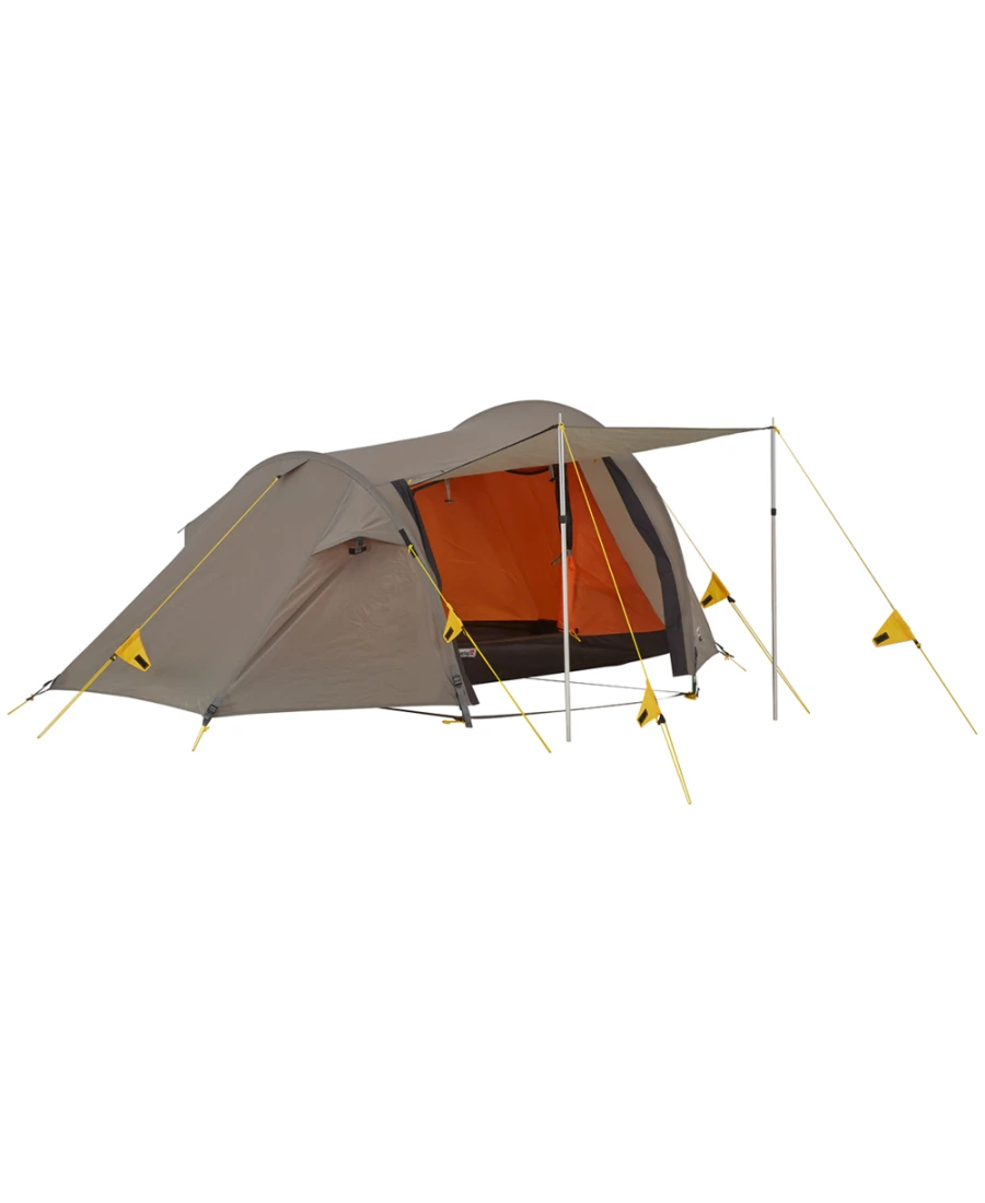 Das Außenzelt verfügt über vier verschließbare Apex-Ventilationsklappen. Die Außenzelttür kann im geöffneten Zustand mit zusätzlichen Stangen aufgestellt werden und bietet somit einen hervorragenden Sonnen- sowie Regenschutz. Das Innenzelt bietet eine komfortable Sitzhöhe von 93cm und genügend Platz an der Seite für mitgeführtes Gepäck. Ferner verfügt das Innenzelt über zwei abdeckbare Lüftungsöffnungen sowie vier Taschen zum Verstauen der Kleinigkeiten. Die obere Hälfte der D-Formigen Innenzelttür besteht aus nicht abdeckbaren Mosquitogazen.