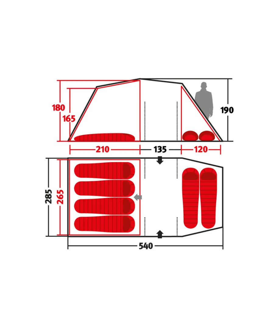 - Zeltinnenmaß: Länge: 210cm Breite: 265cm Höhe: 180cm