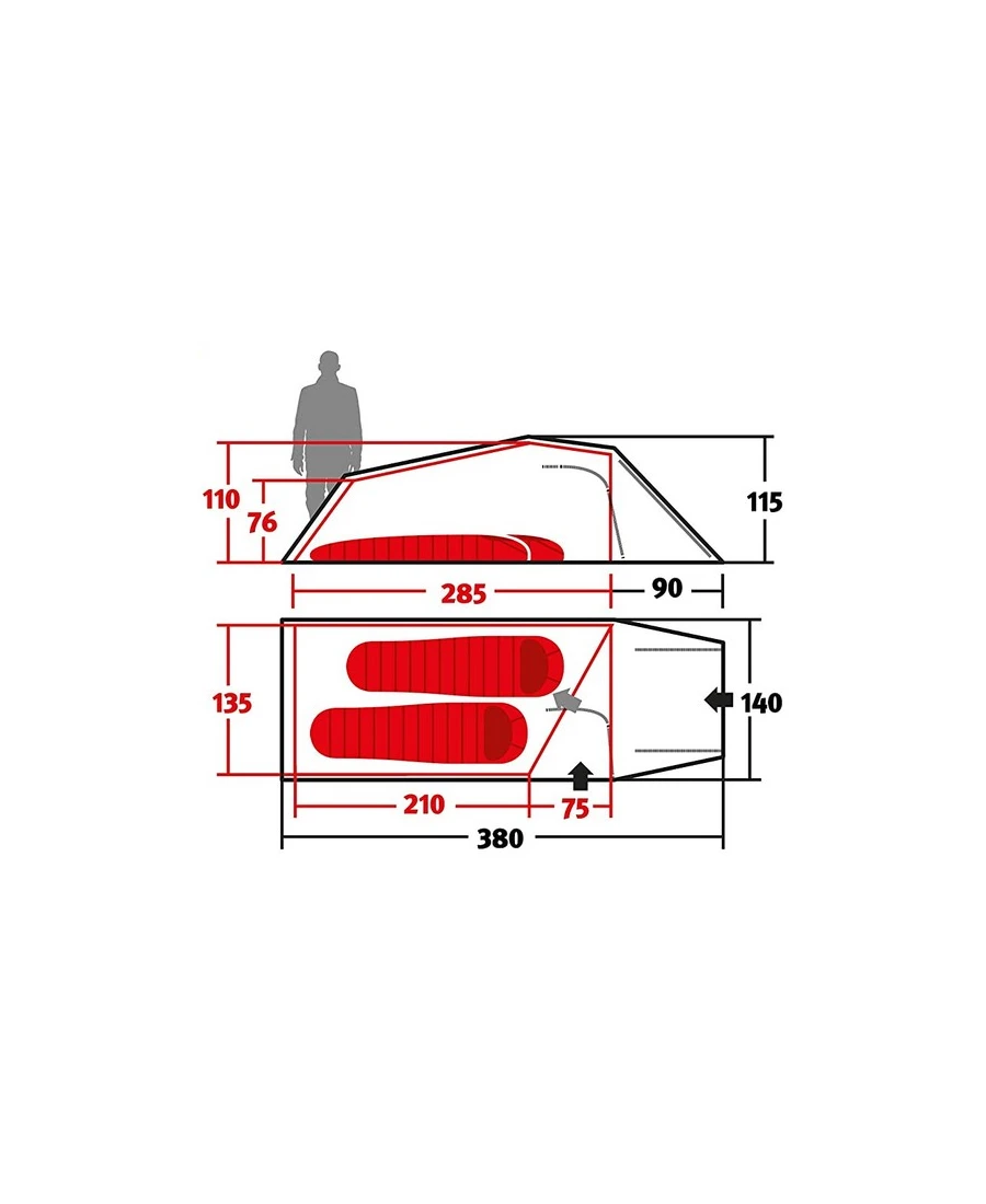 - Maße Innenzelt (LxBxH): 210/285cm x 135cm x 110cm