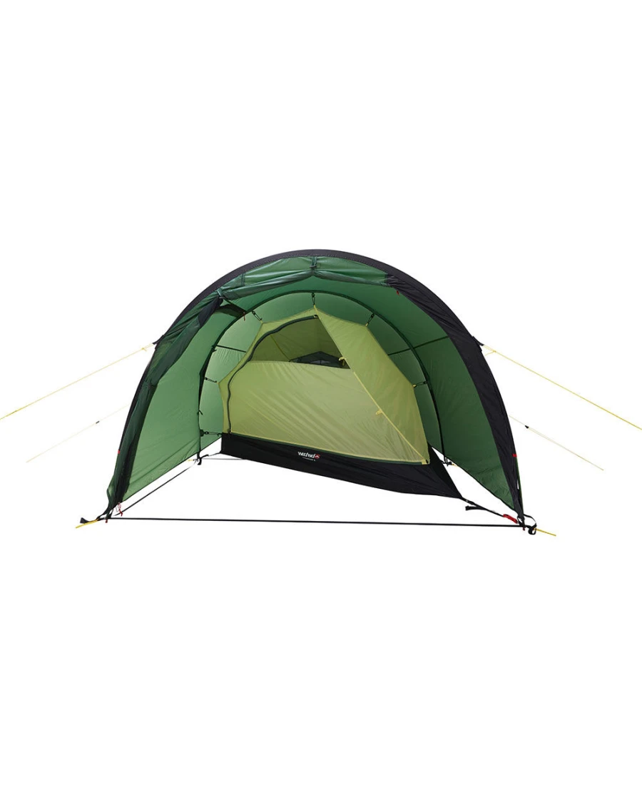 Das Wechsel Tents Tempest 2 ist ein Zelt für zwei Personen mit großen, regengeschützten Eingängen und einer Apsis. Es hat drei durchgehende außenliegende Flachkanäle. Diese sind gut zu handhaben, bieten kaum Windwiderstand und minimieren so die Windgeräusche. Durch die besondere, steile Form des Vorzeltes kann man darunter gut sitzen und die gesamte Fläche nutzen. Das Innenzelt lässt sich im aufgebauten Zustand ein- oder der aushängen. Der D-förmigen Innenzelteingang besteht zur Hälfte aus Moskitogaze.