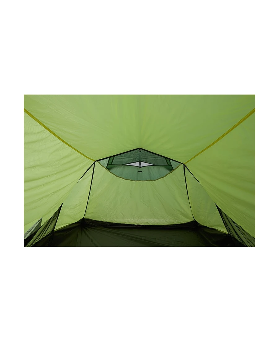 Vier Innenzelttaschen aus Moskitonetz bieten schnellen Zugriff für rasch benötigte Kleinteile. Die Apsis besitzt einen Seiteneingang und eine aufrollbare Frontöffnung. Die Belüftung am Innenzelt, sowie drei Apex Lüfter am Außenzelt sorgen für bestmögliche Ventilation. Das Zelt hat eine aerodynamisch günstige Form und ist dadurch sehr sturmstabil.