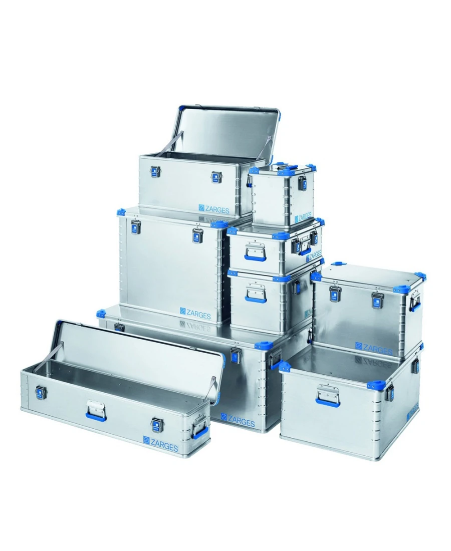 Die stabile Zarges Eurobox in acht verschiedenen Formaten ist für nahezu jede Aufgabe des Transportwesens geeignet, bei der Leichtigkeit und Stabilität wichtig sind. Die hochfesten und korrosionsbeständigen Alu-Legierungen der Zarges-Boxen sorgen für eine lange Lebensdauer und die sprichwörtliche Qualität. Die Boxen sind mit Stapelecken, Fallfedergriffen, Verstärkungssicken und 3 vollverschweißten Profilrahmen versehen. Die Scharniere sind aus Edelstahl und die Deckel mit Gurten gesichert. Die Boxen sind durch die Deckeldichtung staub- und spritzwassergeschützt.